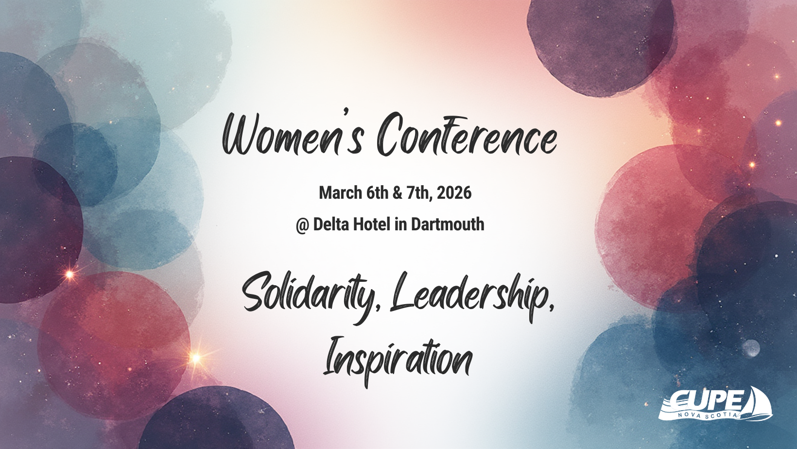 CUPE Nova Scotia is thrilled to announce more details of our upcoming second Women’s Conference! This two day event will be held on March 6th & 7th, 2026 at the Delta Hotel in Dartmouth. CUPE members who are women or gender diverse persons are encouraged to register by February 20th, 2026 at this link. The registration fee is $100. Lunch will be provided. The hotel’s reservation page for this event can be accessed here. March 6th: 1-4pm, reception 6:30 to 8:30pm March 7th: 9am to 2:30pm More details to follow at a later date.