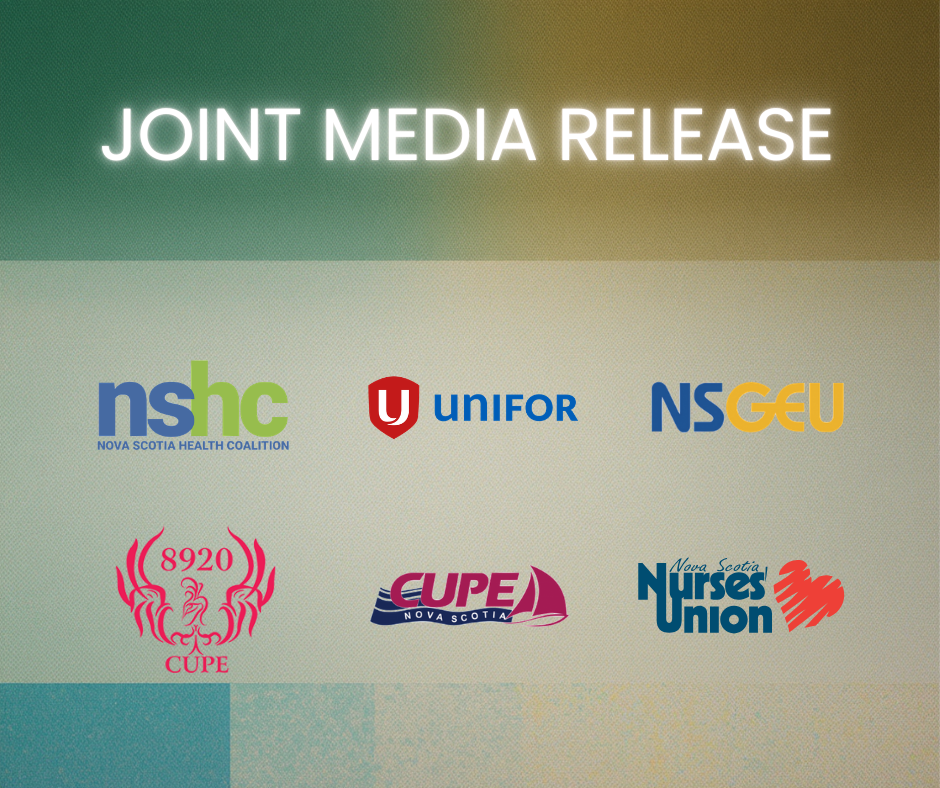 Please see the PDF document attached below for a joint media release from CUPE Nova Scotia, the Nova Scotia Health Coalition, Unifor, the Nova Scotia Government Employees Union (NSGEU), CUPE Local 8920, and the Nova Scotia Nurses Union (NSNU) about privacy and transparency concerns with how Nova Scotia Health has implemented One Patient One Record (OPOR).